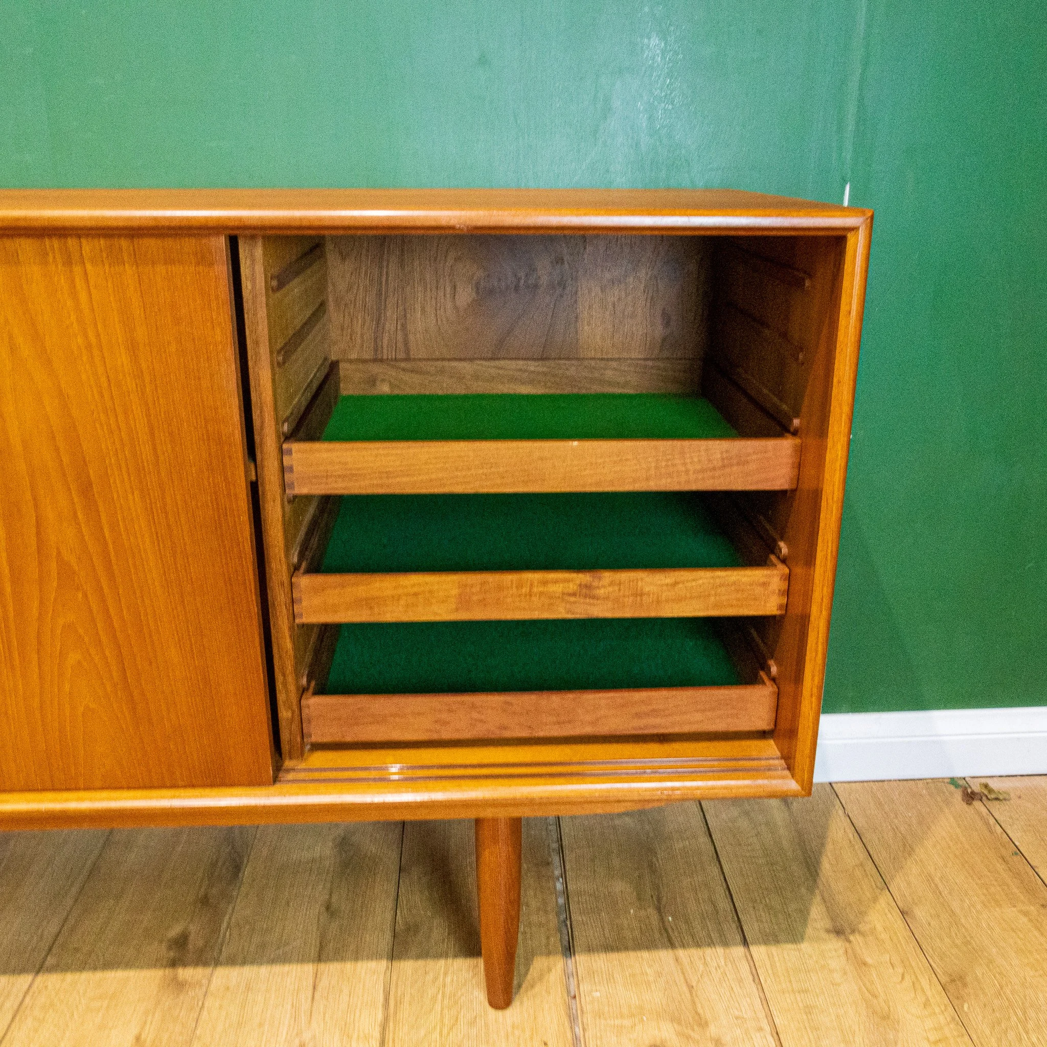 A superb example of Bernhard Pedersen's craftsmanship, this rosewood tambour-front sideboard showcases exceptional Danish build quality and striking mid-century design. The beautifully grained rosewood, smooth tambour doors and refined proportions make this a statement storage piece for any dining or living space.